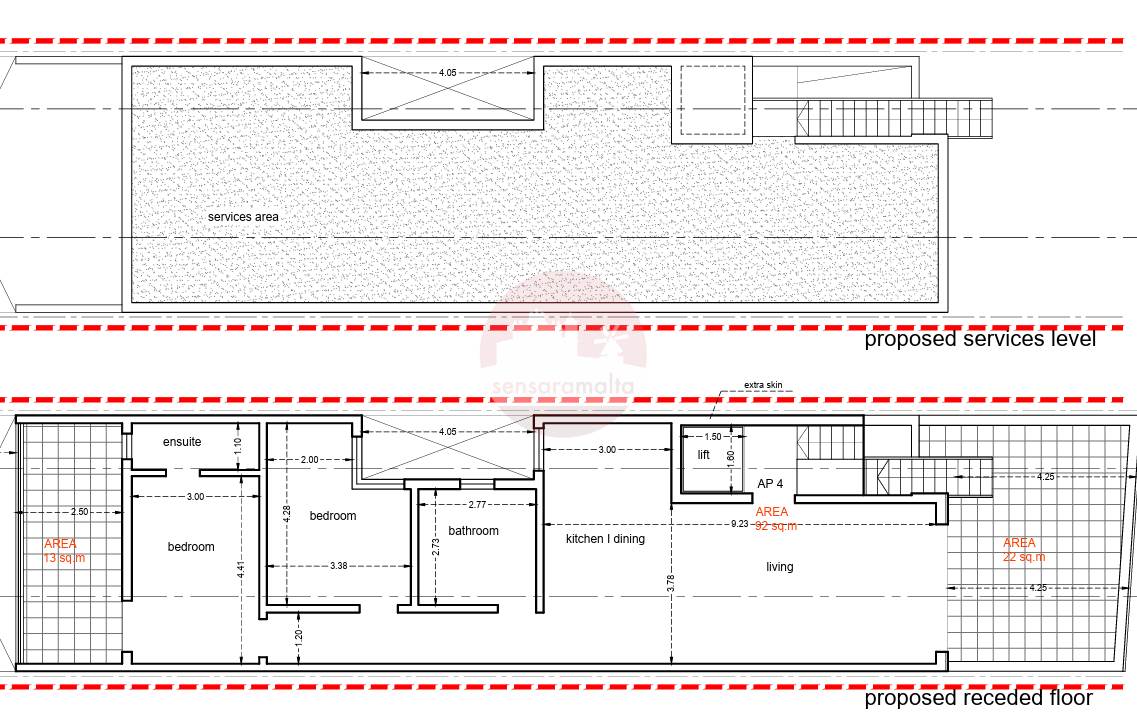 This penthouse consists of a circa 95 sqm internal, well-sized front open plan overlooking the front terrace of circa 22 sqm of which an external staircase from the same terrace leads you to the property's private roof terrace. , 2 double bedroom main served with an ensuite and back terrace circa 13sqm.
