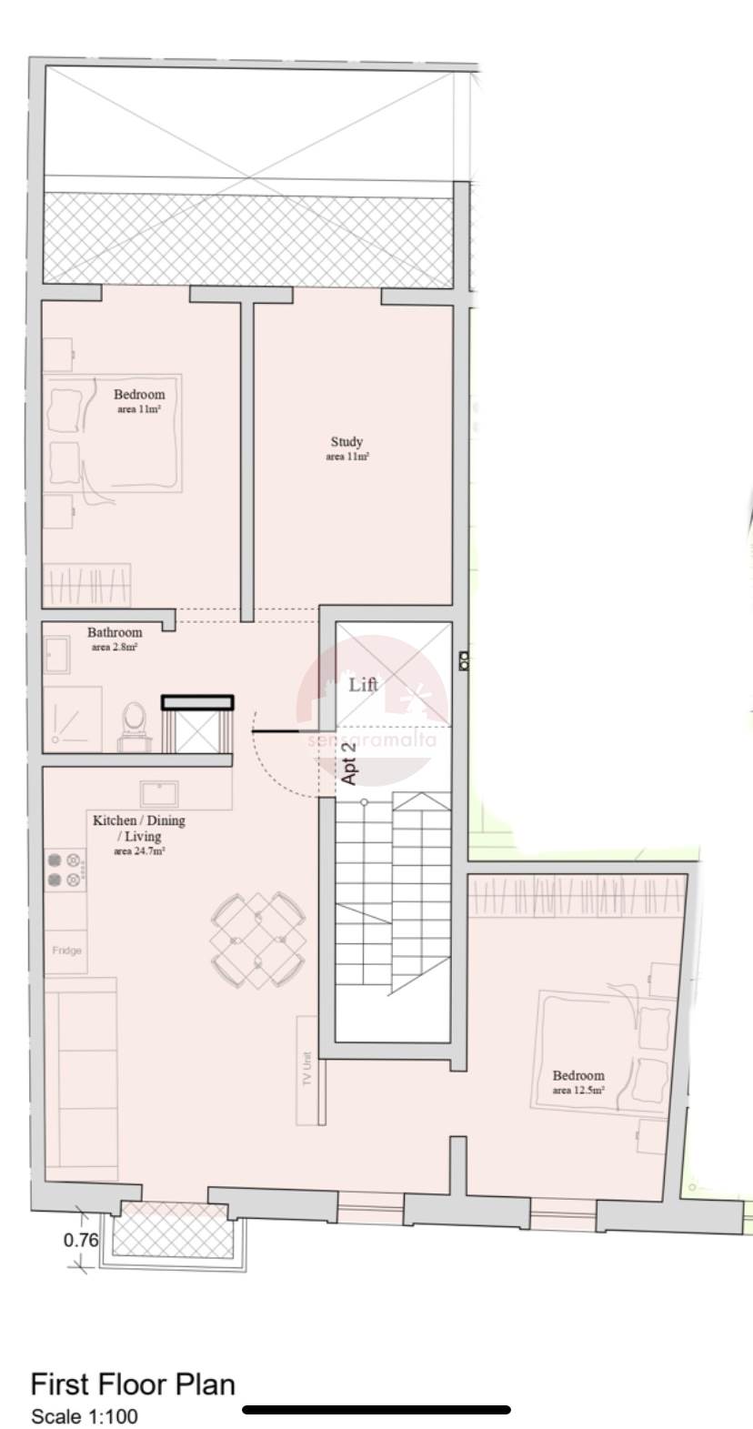 Msida - 1 Bedroom Fifth Floor Finished Apartment On Plan