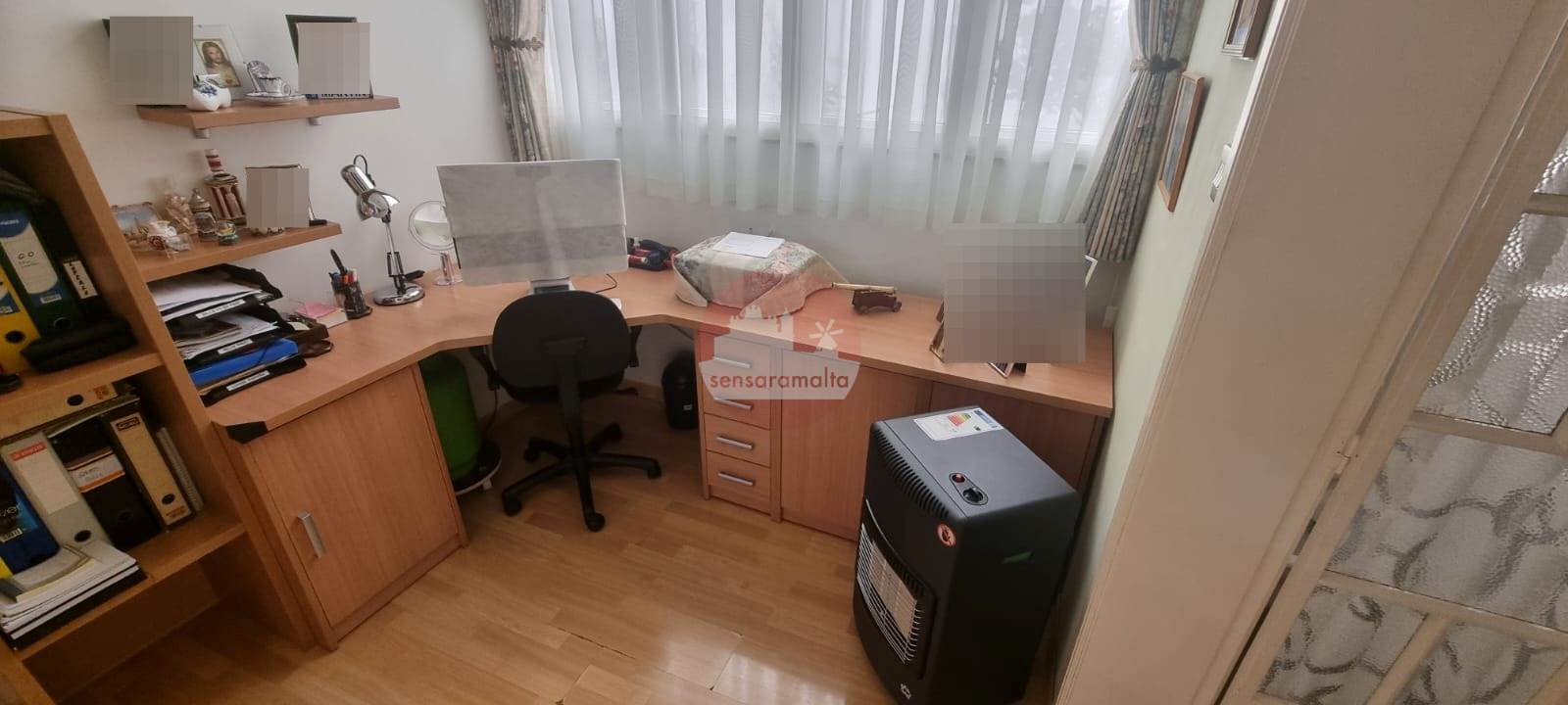 Located in Gzira, this bright and airy first-floor 2-bedroom apartment is served with a lift and offers a practical layout. It includes a main bedroom and a double bedroom with access to a front balcony, a main bathroom, a combined kitchen/dining/living area, and a study area.