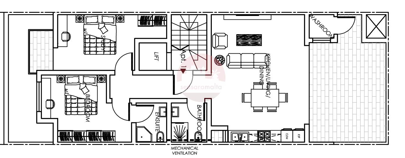 The property layout consists of a 2 double bedrooms , one served with a front balcony and the main served with ensiut, master bathrooms and aback open plan served with a terrace.