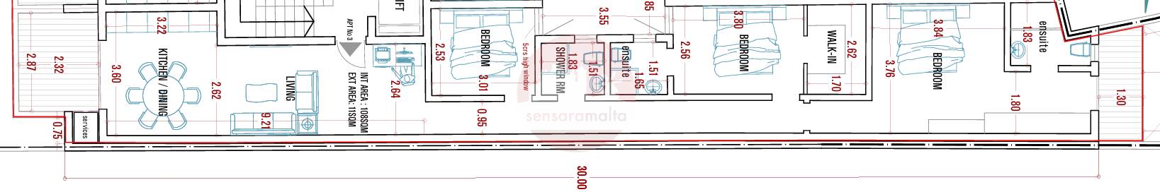 Mosta - 3 Bedroom Finished Third Floor Apartment On Plan